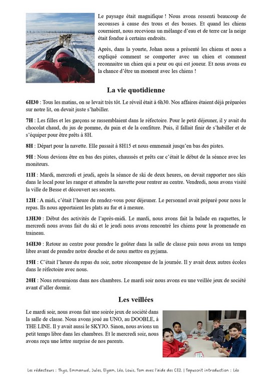 Les CM vous présentent leur voyage en classe de neige, bonne lecture !