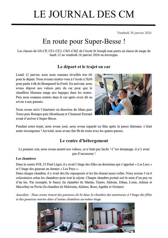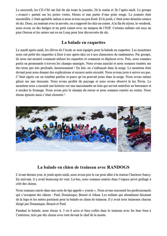 Les CM vous présentent leur voyage en classe de neige, bonne lecture !