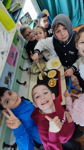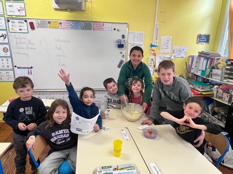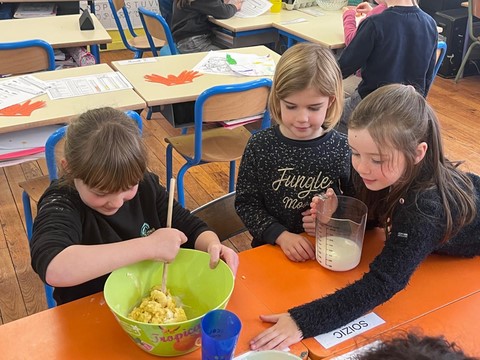 Ce jeudi 26 mars, tous les enfants de l'école ont préparé des pancakes après avoir étudié la recette en anglais.Les plus grands ont aidé les plus petits. Ces pancakes ont été dégustés, accompagnés de sirop d'érable, l'après-midi, à l'occasion du carnaval.