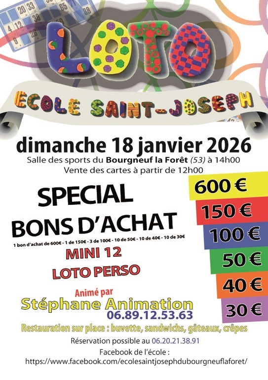 5 séances en Septembre - Octobre 2025 pour toutes les classesKERMESSE DE L'ECOLE SAINT JOSEPH