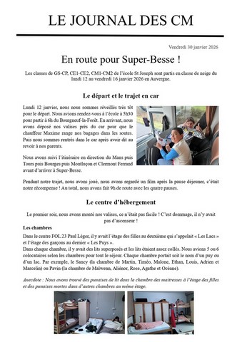 Les CM vous présentent leur voyage en classe de neige, bonne lecture !
